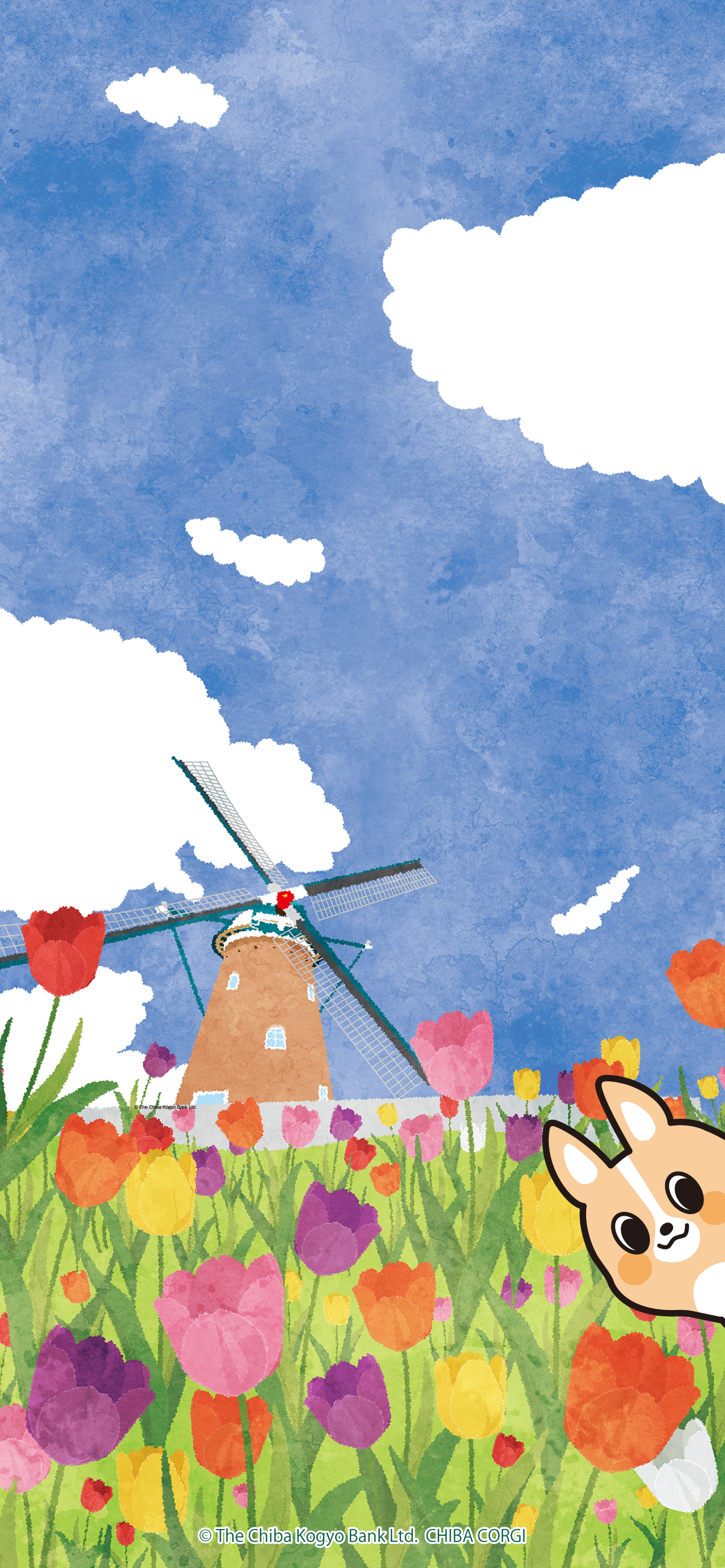 ちば興銀のシンボル、コスモスの柄がチャームポイントのコーギー犬。