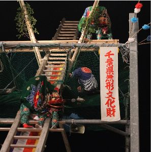 千葉県指定無形民俗文化財である岩沼の獅子舞は、400年前から続く歴史ある祭り。10月の皇産霊(みむすび)神社の祭礼に合わせ、氏子安全・五穀豊穣・悪疫退散を祈願し、獅子舞が奉納される。獅子舞には様々な演目があるが、最終演目「乱玉の舞」では2頭の獅子が梯子上部で演じる曲芸や昇降のすれ違いは妙技として知られ、見物人を魅了する。神社の森から聞こえてくる懐かしい囃子のリズムに乗って郷土の民俗文化を伝えている