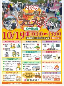 毎年恒例の「柏の葉公園オータムフェスタ」。フリーマーケット以外にステージイベント・体験型イベント・マルシェ・キッチンカーなどイベント盛り沢山! 子どもからシニアまで1日中楽しめる!