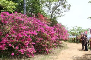 北総随一の桜の名所として知られる小見川城山(おみがわじょうやま)公園は、ソメイヨシノなどが見納めとなる頃に、今度はツツジが見ごろを迎える。山一帯を春色に染め上げるつつじを見に行こう。
