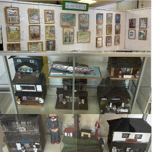 流山に在住していた故鈴木心平さんが描いた「流山カルタ」の絵札を中心に、流山で制作された「新作東葛歴史カルタ」「誇れるまち流山かるた」「流山防災カルタ」の絵札4種類を展示。おめでたい七福神の絵札や伝統行事、懐かしの流山の風景や史跡などの名所が描かれており、流山について知ることができ、災害への備えも学べる。また、市内在住の窪田幸平さん制作の利根運河や流山のジオラマも展示。
