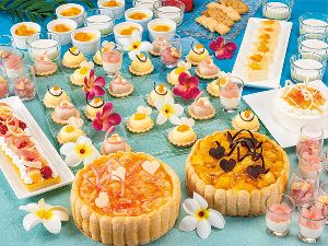 夏に旬を迎える対照的なフルーツ、桃とマンゴーをメインとしたスイーツビュッフェ。みずみずしく上品な甘みの桃のスイーツ、色鮮やかで滑らかな食感と濃厚な甘みが南国を感じさせるマンゴーのスイーツ、同ホテルの定番スイーツなど、30種以上のアントルメや涼しげなグラススイーツが夏のひとときを彩る。その他、桃やマンゴーの原産地にちなんだアジアンテイストのオードブルなどの軽食も用意。