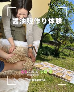 「醤油麹」は一般的に米麹と醤油を混ぜた調味料として知られるが、今体験では“醤油のもと”となる本来の醤油麹づくりが体験できる。茹でた大豆と炒った玄米に麹菌を繁殖させる仕込みの工程のほか、希望者は2日目以降の手入れにも参加できる。無農薬・無化学肥料の原料を用いた醤油づくりを通して、身体にも、環境にもやさしい手づくり醤油のおいしさと、発酵の基礎や奥深さに触れられる内容となっている。