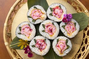 千葉・房総地域の郷土料理「太巻き花寿司づくり」を開催。山ごぼうや野沢菜などを芯に、酢飯と海苔で巻いて華やかな絵柄を描く伝統のお寿司で、祝い事や人をもてなす席で親しまれてきた。見た目も美しい花模様を自分の手で仕上げる楽しさも魅力。完成した太巻き花寿司は、その場でランチとして味わえ、地域の食文化に触れながら楽しめる特別な体験。各日5組(1組4名まで)。
