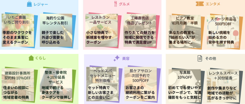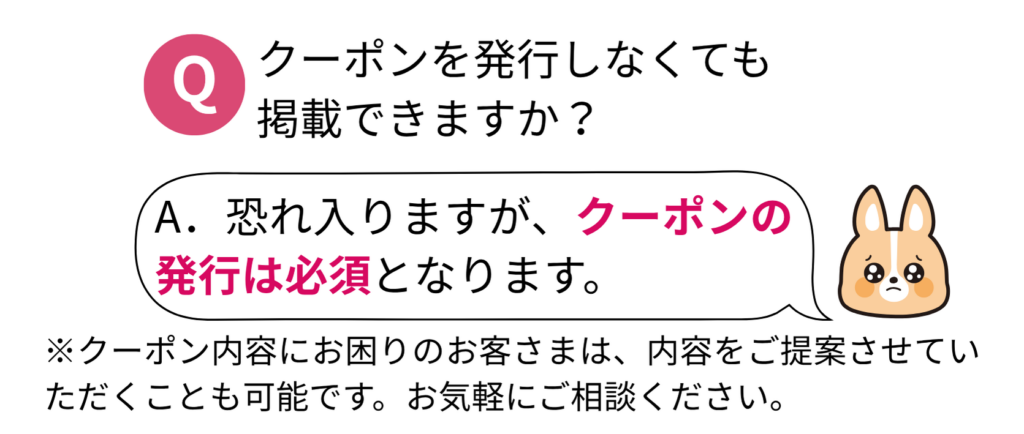 | クーポン | 割引・特典など | 必須(審査あり) |
