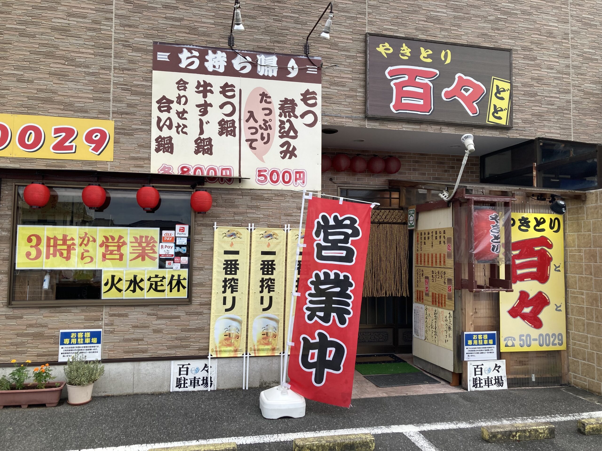 地元で長年親しまれている「やきとり百々(やきとりどど)」さまは、ご夫婦で営まれており、いつでもアットホームな雰囲気で迎えてくれます。一本一本心を込めて手作りされている焼き鳥をはじめ、もつ鍋、マグロのかま焼きなど、品揃えが豊富な点が魅力です。特に、じっくり煮込んだ自慢の『もつ煮』は、クーポンを使ってぜひ味わっていただきたい逸品です。お電話でご予約いただければテイクアウトにも対応してくださいます。ぜひ一度足を運んでみてください。