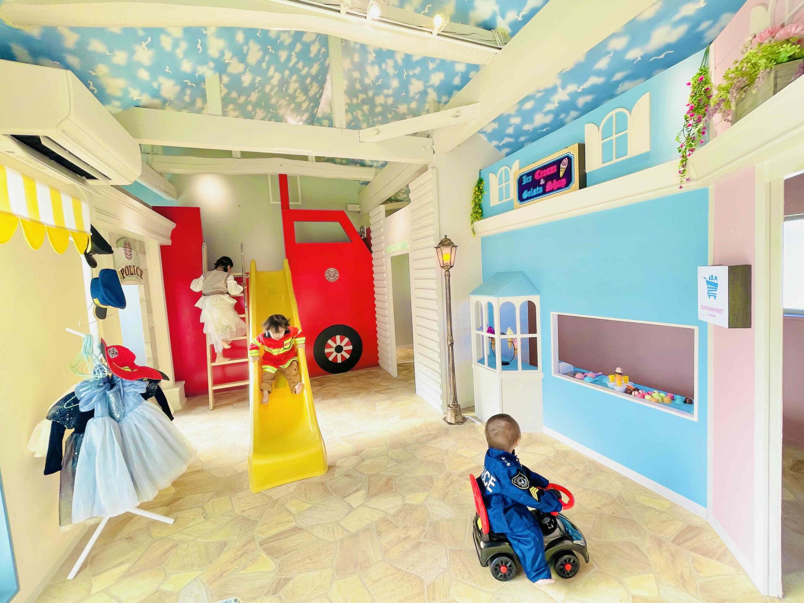 地域密着型の子連れ向け一棟貸し宿泊施設です。広々とした空間と充実した設備に加え、消防車の滑り台やごっこ遊びが楽しめる本格的な室内遊び場が魅力です。天候に左右されず、お子さまがのびのびと過ごせます。駅徒歩3分とアクセスも良好。最大14名まで宿泊できるため、家族旅行だけでなく、ご友人とのお誕生日会やママ会にも最適です。