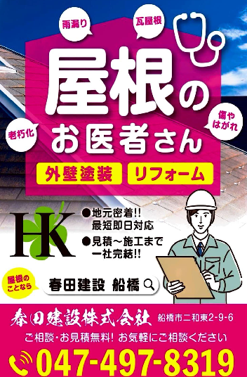 千葉県船橋市を中心に「屋根工事」「外壁塗装」「総合リフォーム業」「新築施工」「不動産業」まで幅広く携わっております。