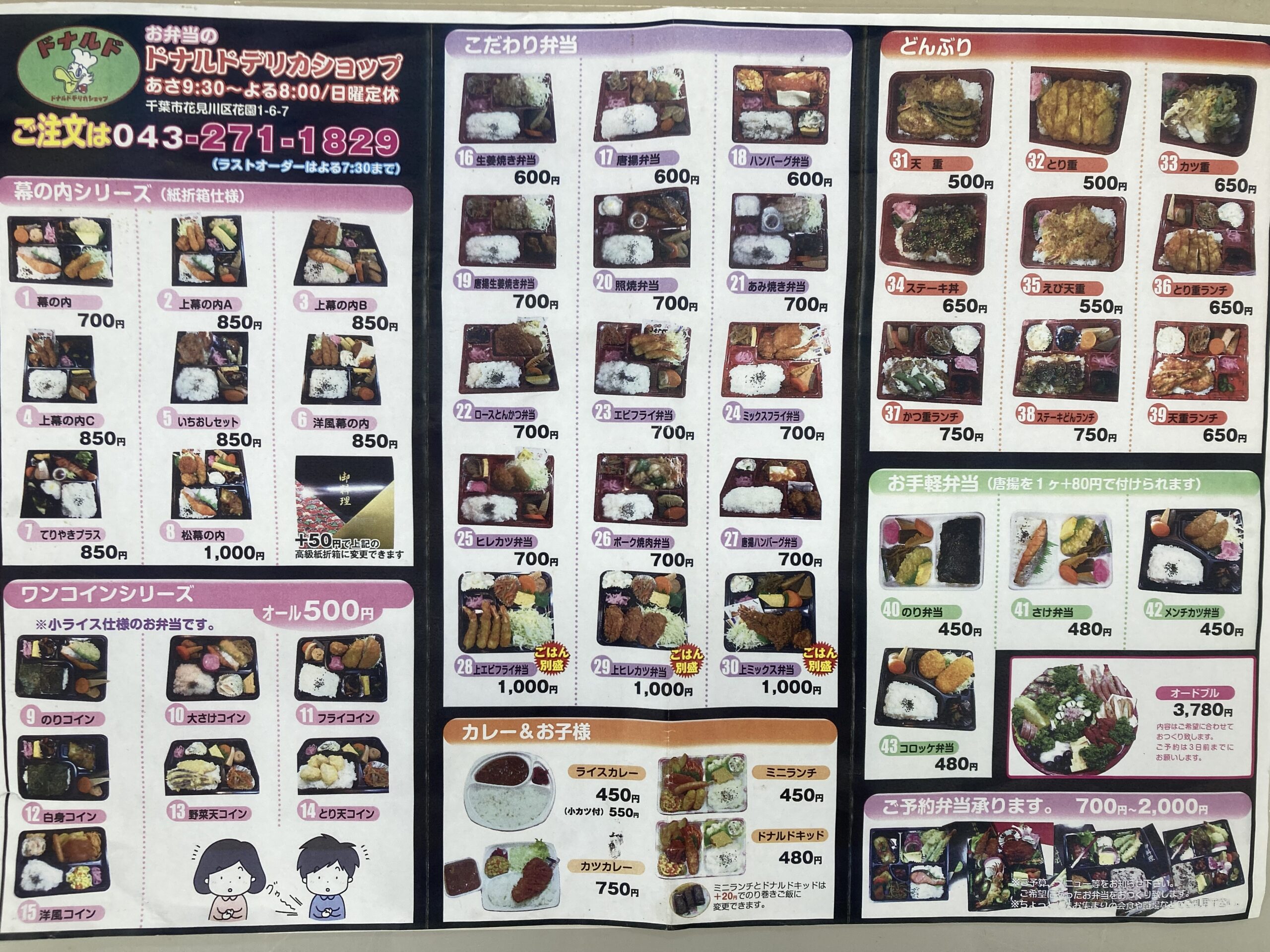 「ドナルドデリカショップ」さまは、作り立ての美味しいお弁当が食べられる、地元で大人気のお店です。ワンコインランチから、和洋中、幕の内弁当、お子様向けのお弁当など、種類も豊富で、ボリュームもあります。メインはもちろん、副菜も手作りで、何を食べてもおいしいお弁当です。豚汁も、具がたくさん入っていて最高。皆さんも、美味しいお弁当を堪能しに、ぜひご来店ください。