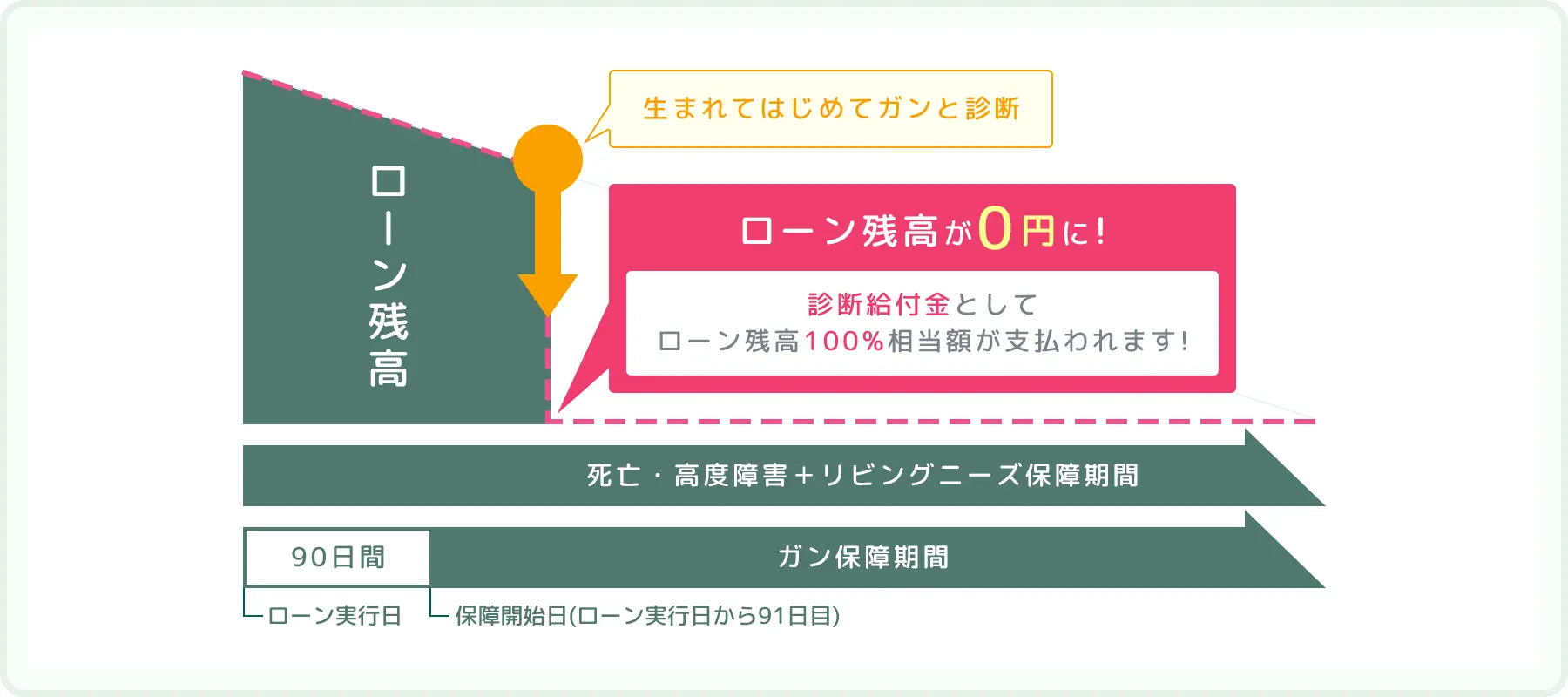 保障開始⽇:ローン実⾏⽇から91 ⽇⽬