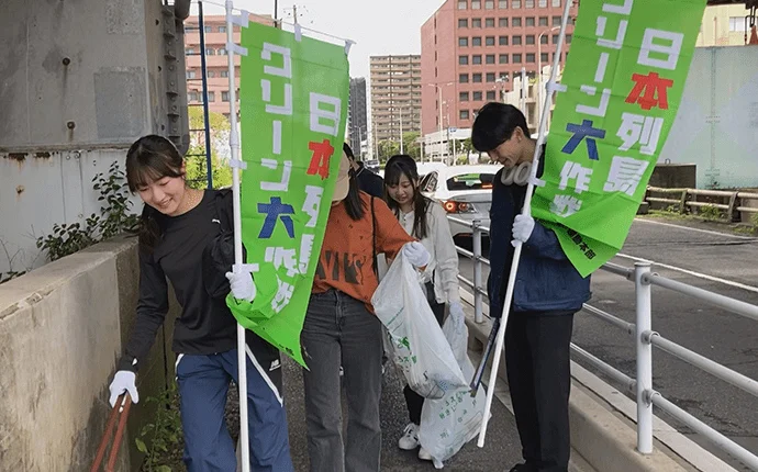 毎年、「小さな親切運動」の一環として春の県下一斉ゴミゼロ運動に行員・スタッフおよびその家族がボランティア参加しております。また、国道14号、357号沿の9企業・団体で組織される「国道をきれいにする会」に参加し、毎月沿道の清掃を実施するほか、県内各地域での美化活動においても積極的に参加しております。