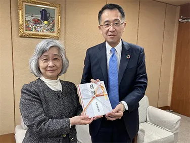 当行役職員による募金活動「ともしびの会」では、毎年年末に県内の養護施設などへ寄付しております。
